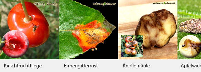 Alle wichtigen Schädlinge – sowohl Insekten als auch Pilzkrankheiten – findet ihr hier: