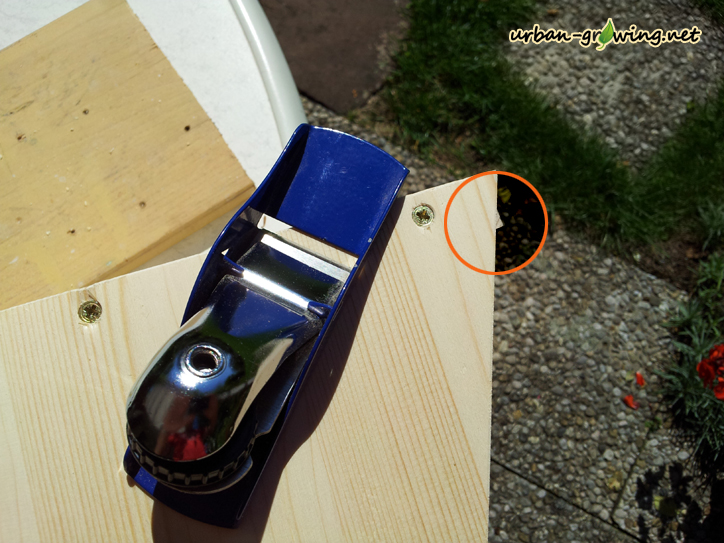- 1 gehobeltes Brett mit 18mm Stärke ca. 100cm lang und 30cm breit (Achtung: nehmt ein Massivholzbrett oder eine mehrschichtige Platte! Bitte keine Leimholzplatte so wie ich. Die verzieht sich nach einigem Dauerregen. 🙁 )