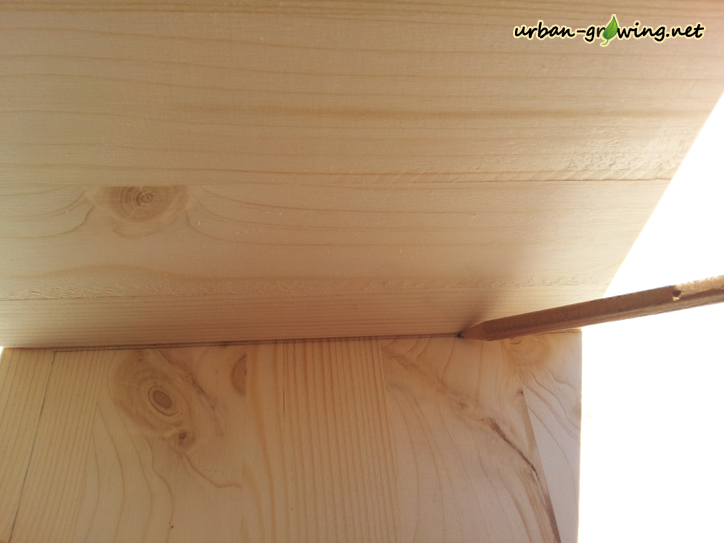 Leimholzplatten können sich nach einiger Zeit verziehen! Das sieht nicht nur unschön aus, sondern verhindert auch ein Öffnen der Reinigungsklappe des Nistkastens!