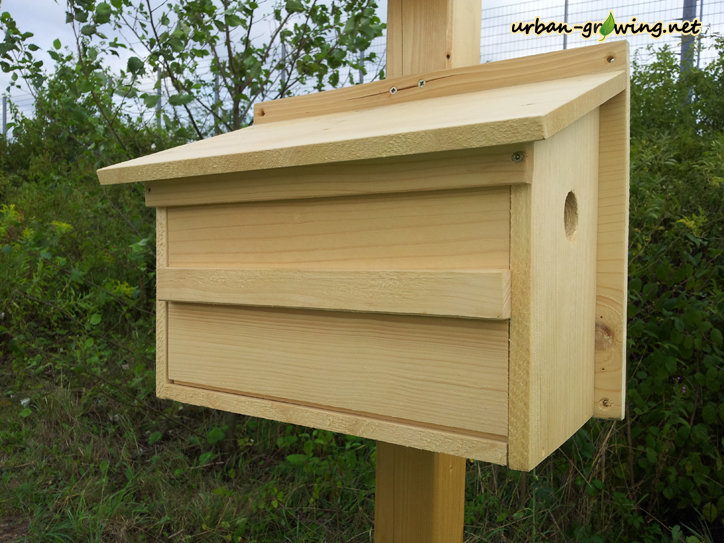 Jedoch glaube ich, dass es langlebiger wird, wenn man noch zusätzlich ein Stück Dachpappe daraufnagelt und die Aussenwände zusätzlich noch mit einer Bio-Lasur anpinselt.