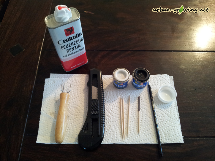 Mit weißer Modellbau Farbe werden die Augen aufgemalt - www.urban-growing.net