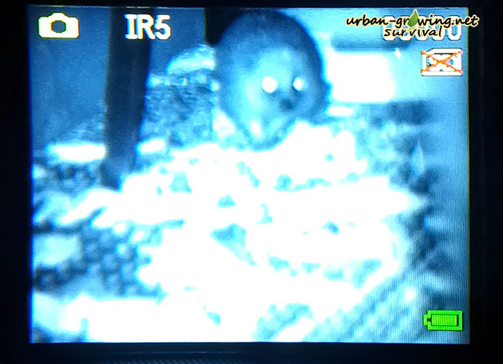 Dieses Foto habe ich mit meinem Handy direkt vom Display des Nachtsichtgeräts abfotografiert! Mit einer SD-Karten Aufnahme wäre es vermutlich schärfer geworden!