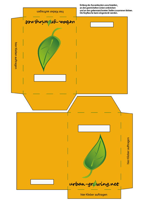 Einfach auf dickem Papier ausdrucken, entlang der Kanten ausschneiden, und entlang der gestrichelten Linien vorknicken. Dann auf die beiden Flächen „hier Kleber auftragen“ Kleber auftragen und das Tütchen zusammenkleben. Die Lasche oben kann eingesteckt oder aufgeklebt werden. Schreibt hinten das Erntedatum der Samen drauf, dann könnt ihr später die Haltbarkeit ablesen. Hier könnt ihr ablesen wie lange eure Samen im Durchschnitt haltbar sind. [Link klick hier]