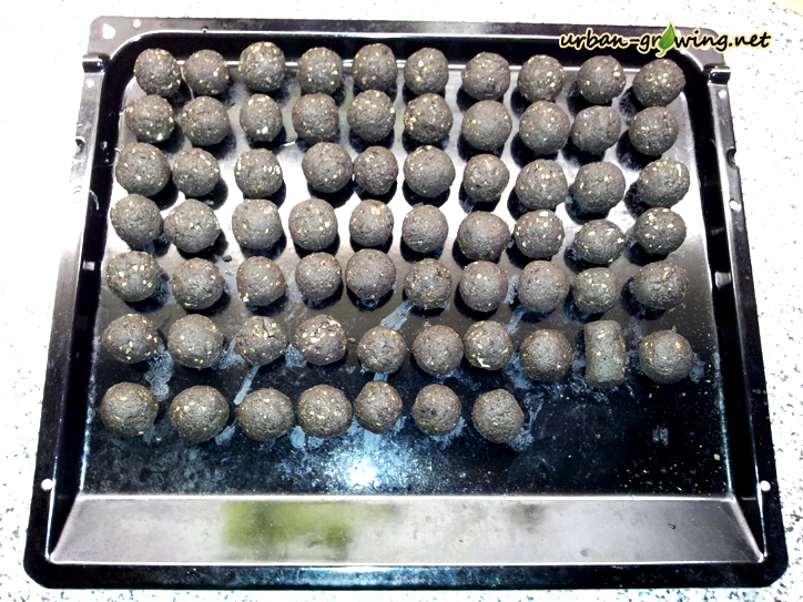 Wie ich oben in meiner Fotostrecke geschrieben hatte, habe ich meine Seedbombs im Backofen bei 50° C getrocknet.
