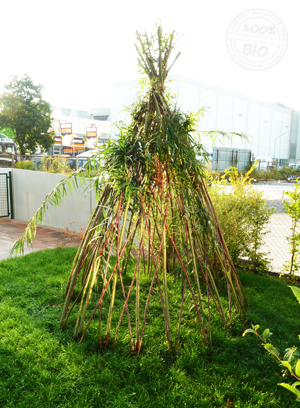 Da frisch geschnittene Weidenruten sehr schnell Wurzeln schlagen, kann das Weidentipi auch von Laien einfach und relativ schnell errichtet werden.